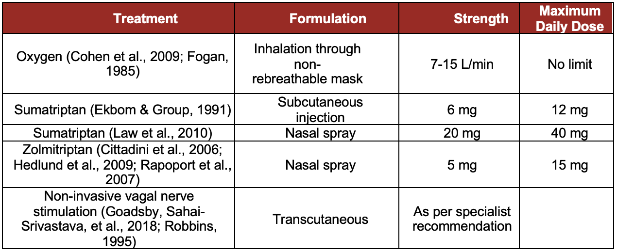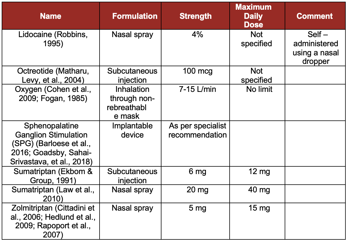 Table 1. Recommended Acute Cluster attack treatments