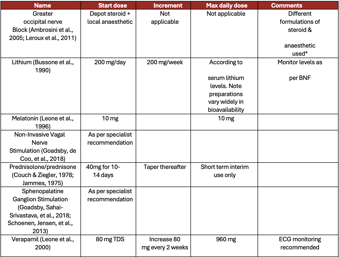 Table 2: Recommended preventive treatments for cluster headaches